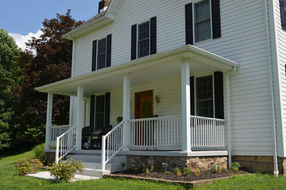 This project took a classic farmhouse and modernized the exterior. An addition that enclosed the original porch was demolished and the front porch was resintated. Additionally, the classic white and black exterior was redone, including all new siding, windows, porch with railings, trim, and shutters. this is a classic and will most definitely stand the test time.